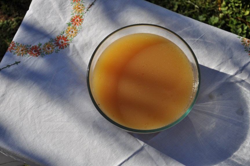 After such long cooking in a slightly acidic medium, the bones become soft and the stock becomes voluptuously gelatinous and deeply flavoured. A good chicken stock is like liquid gold. The stock is strained into 1 litre mason jars (like these) and allowed to cool on the bench. They are then transferred to the freezer until ready to use. Just remember to leave some headspace in the jar for the contents to expand when frozen. The bones I give to the chooks. I have read that you can give them to dogs as they are so soft, but I am personally a bit reluctant to take the chance. I have a labrador and she risks bowel obstruction every day as it is, the vacuum cleaners that they are! You can also compost the bones if chooks or dog are not an option.