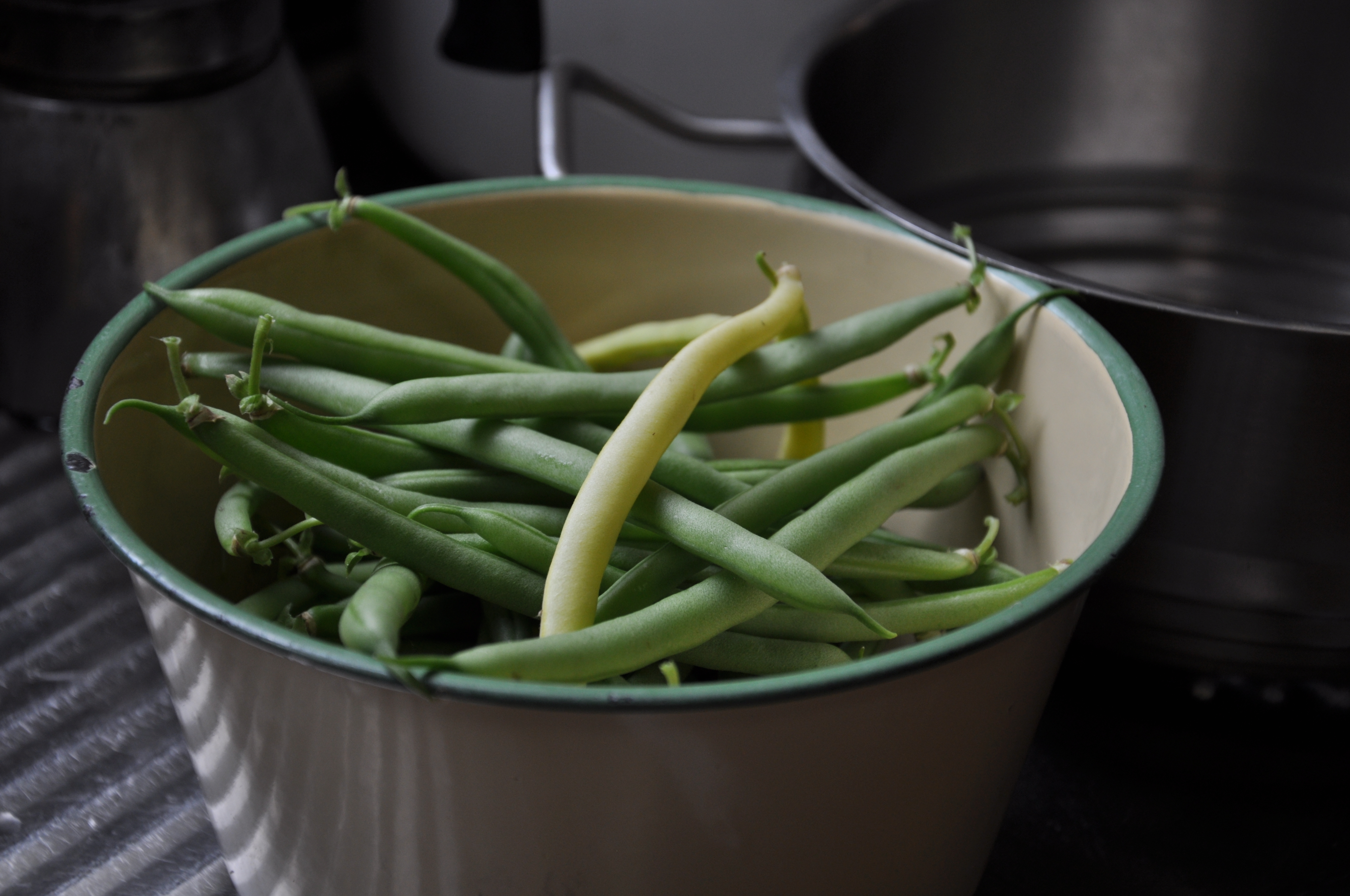 It is not a particularly attractive dish, certainly not the way I photographed it – awards in food photography I shall never win! – but it tastes delicious, is nourishing and comforting, and is honest good food. I have simply boiled some new potatoes while steaming some pumpkin above, mashing the pumpkin and serving both with butter. The beans were lightly simmered in water and served with butter and salt.